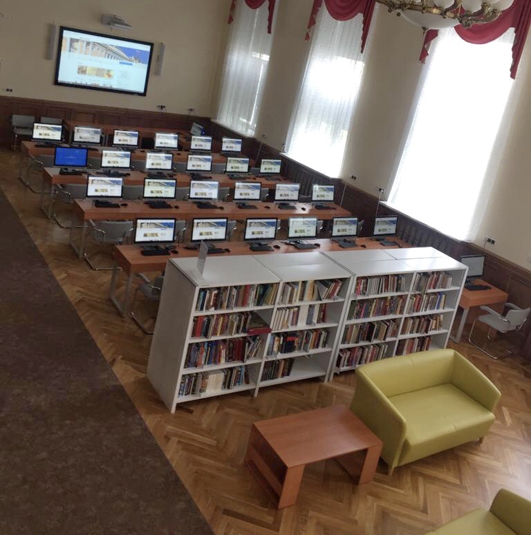 Президентский зал оснащен интерактивной доской, которая помогает лучше взаимодействовать с каждым учеником. Дизайнерское решение аудитории, стеллажи, наполненные книгами о программировании, создают неповторимую атмосферу знаний, а мощные современные компьютеры несомненно становятся лучшими союзниками юных гениев.